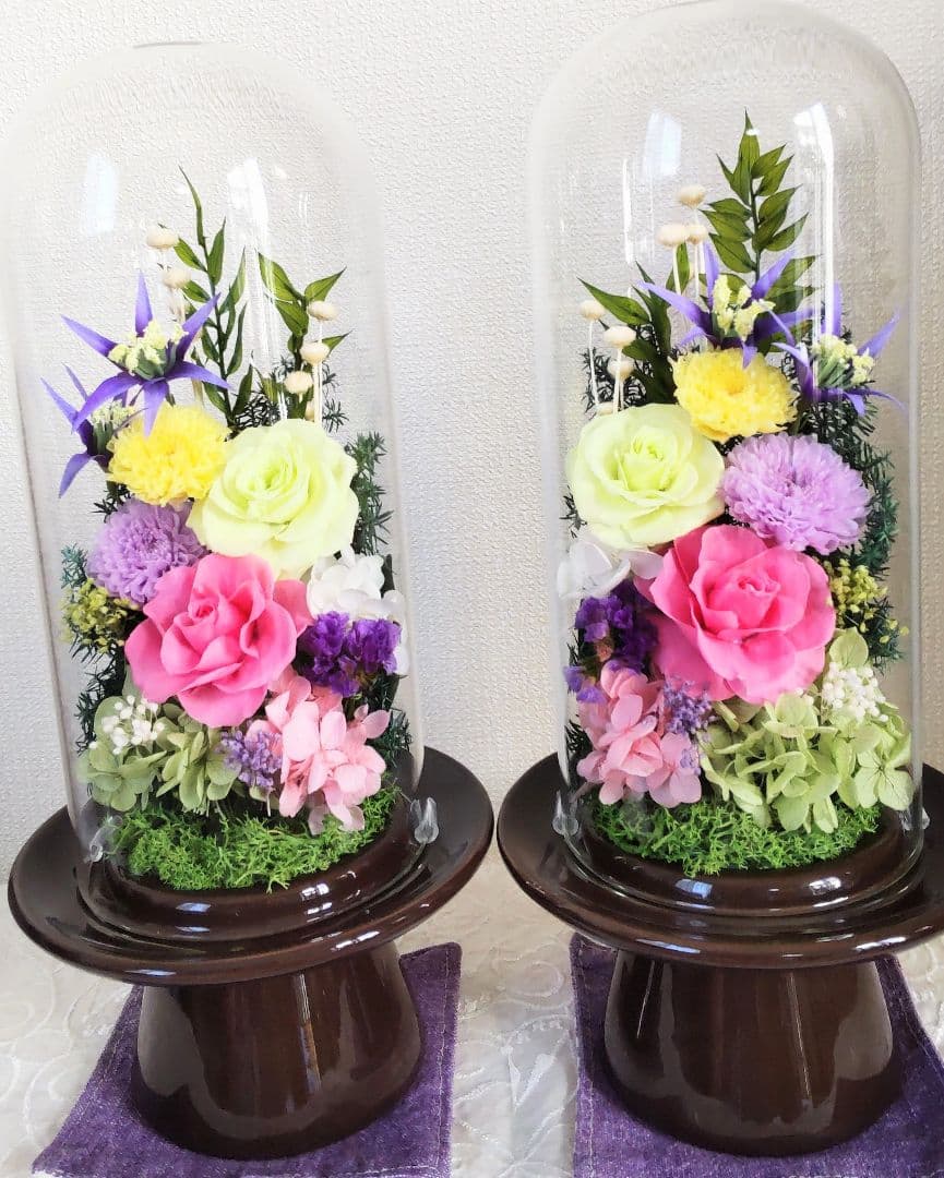- 先住犬に2020年7月に購入させて頂いたお花も 今だに綺麗なまま、愛犬と一緒に納骨堂にあります。 お参りする時は蓋を開け、帰りは閉じて帰ります。 蓋付きなのでお花に埃や汚れが付かず、 綺麗なままなので、納骨堂の中も明るい雰囲気で いつも嬉しいです。 昨夜、2頭目の愛犬が虹の橋を渡ったので、 今回は色違いで購入させて頂きました。 正に愛犬の遺影に花を添えてくれるお花です。